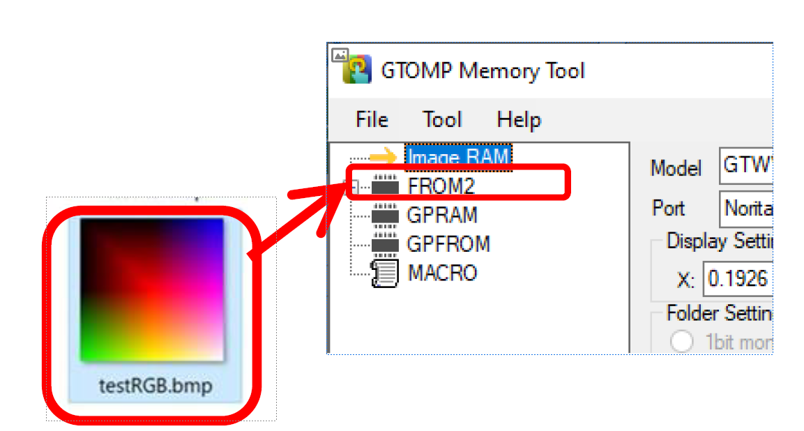 - Click the “Write Display” button to store the image into the GT-CP module’s onboard memory called “FROM2”